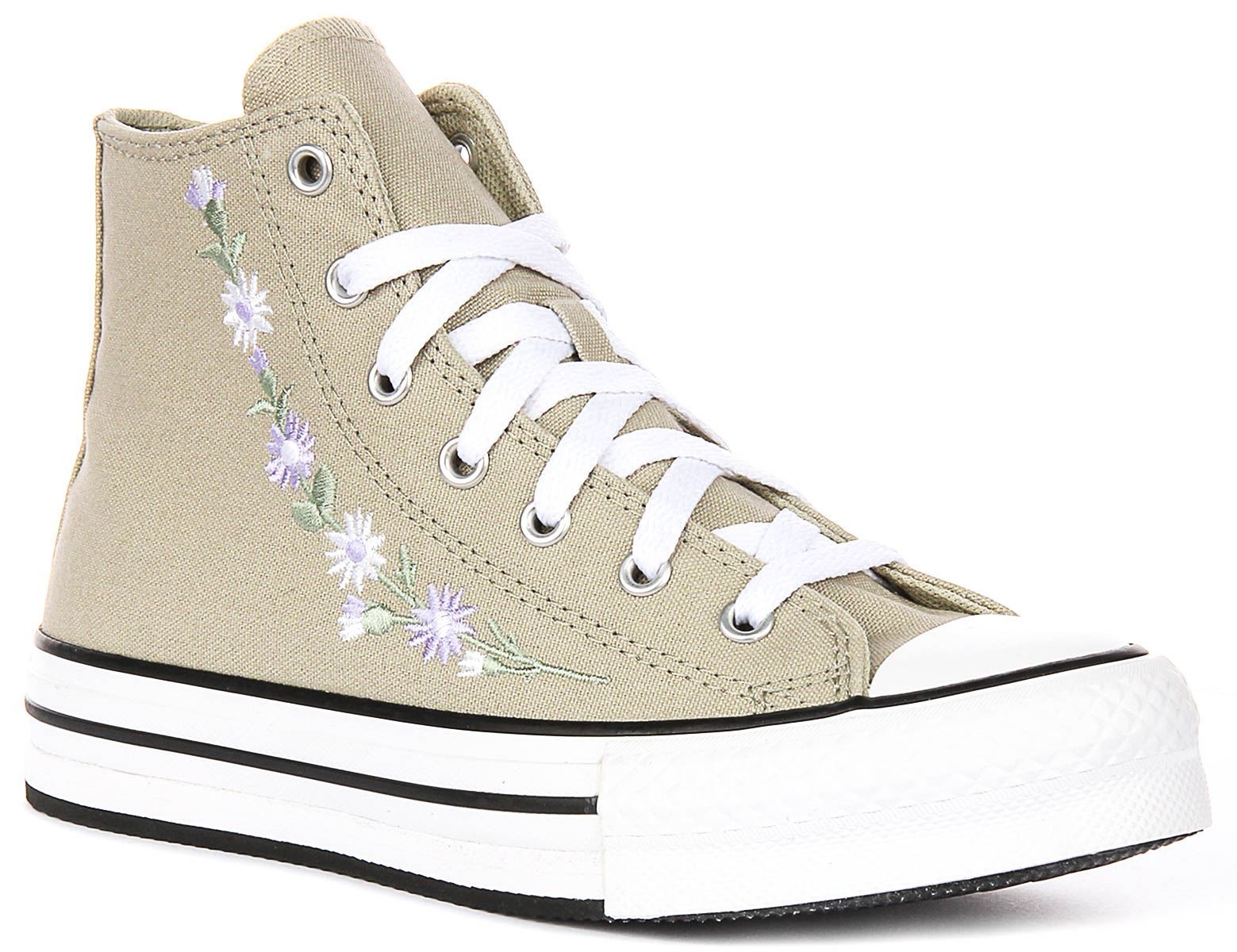 Converse A11825C Ct As Embroidery Junior Girls Trainers In Floral Khaki UK 3 - 6