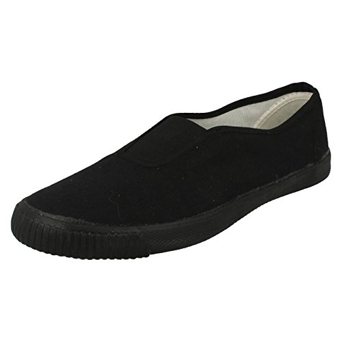 Spot On Childrens Unisex Slip On Plimsolls Gusset Plims - Black Textile - UK Size 11 - EU Size 29 - US Size 12