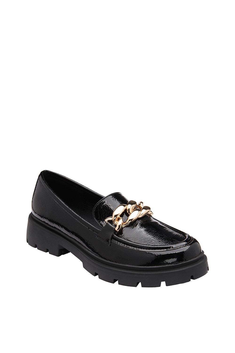 Spot On Ladies Tassel Trim Wide Fit Slip On Shoes F80560 - Black Synthetic Patent - UK Size 8EE - EU Size 41 - US Size 10
