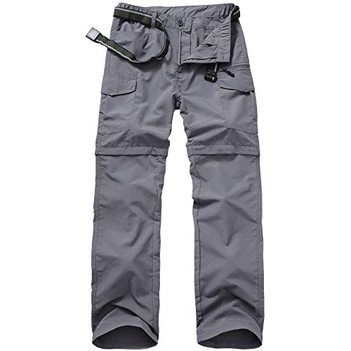 Jessie Kidden Hiking Walking Trousers Men,Quick Dry Convertible Lightweight Breathable Waterproof Outdoor Fishing Work Zip Off Cargo Pants #6055-Grey-32