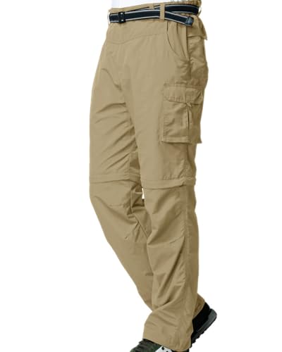 Jessie Kidden Hiking Walking Trousers Men,Quick Dry Convertible Lightweight Breathable Waterproof Outdoor Fishing Zip Off Pants #225-Khaki-32