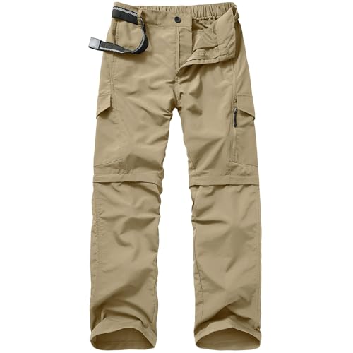 Jessie Kidden Hiking Walking Trousers Men,Quick Dry Convertible Lightweight Breathable Waterproof Outdoor Fishing Work Zip Off Cargo Pants #6088 Khaki-30