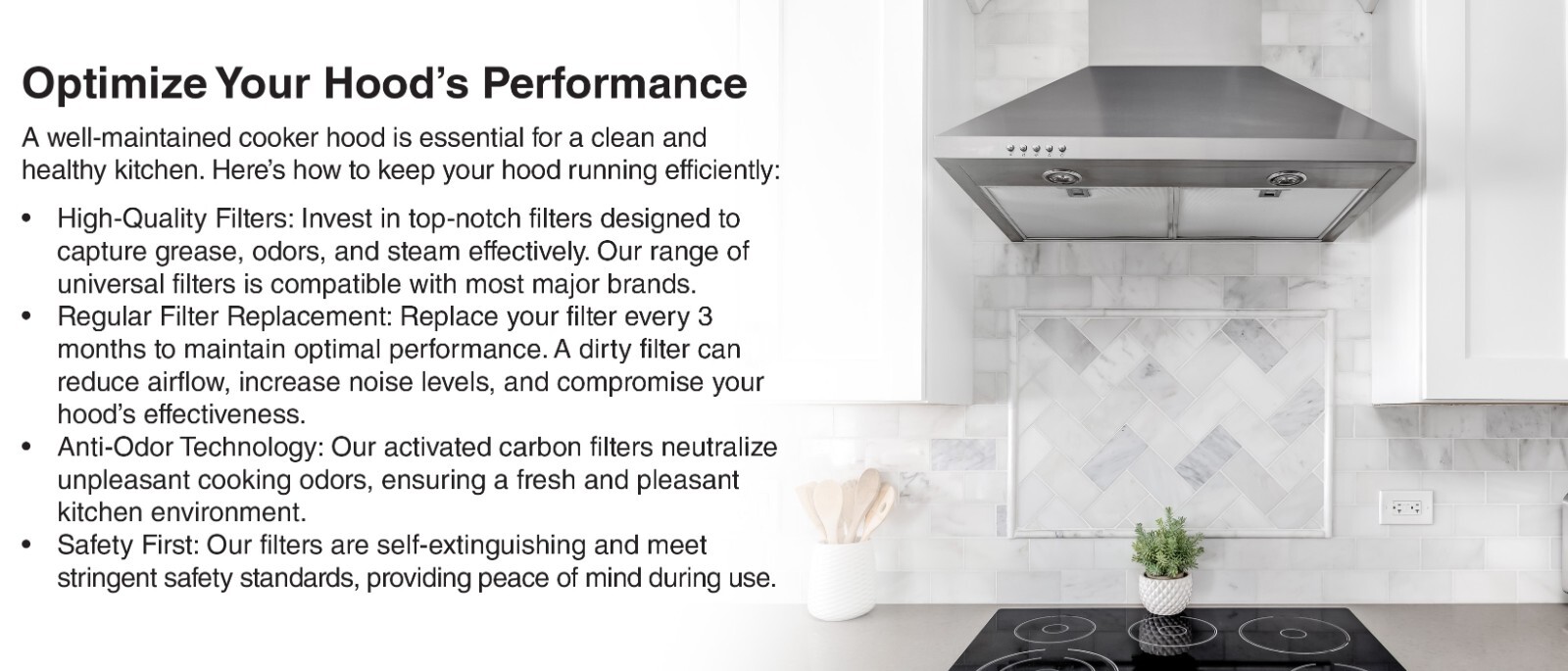 Vent Filters For Matsui Cooker Hood Extractor Fan Charcaol Filter Cut to Size