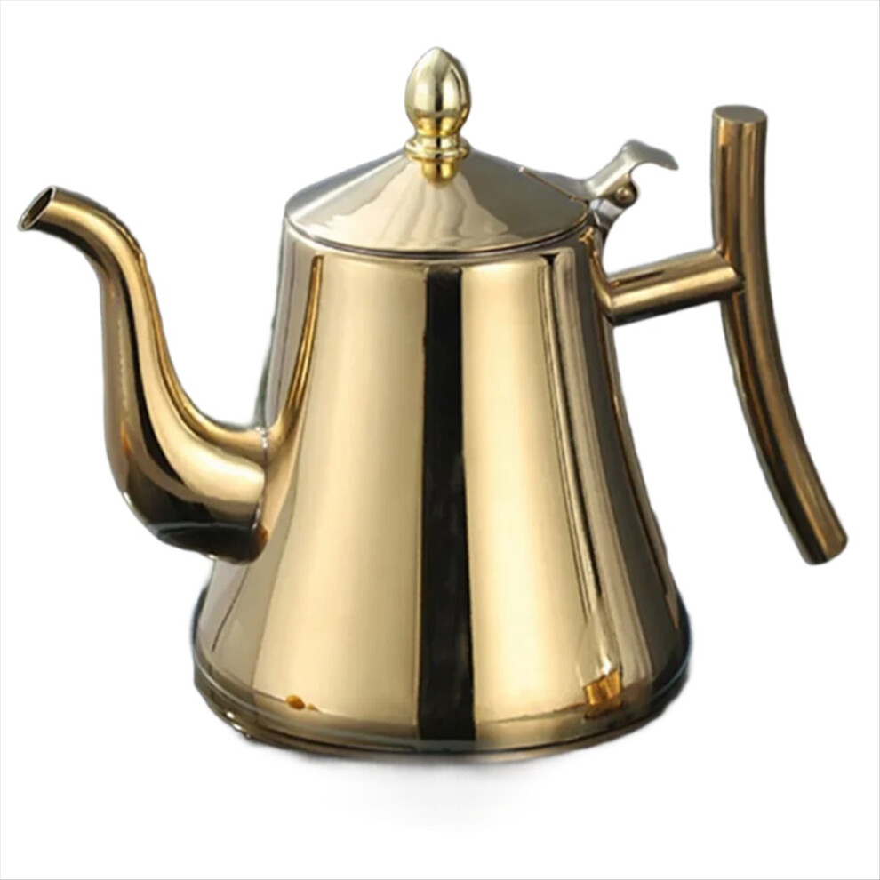 Tea Pot with Filter Thicker Stainless Steel Water Kettle Hotel Coffee Pot Restaurant Induction Cooker Tea Kettle Gold 1L