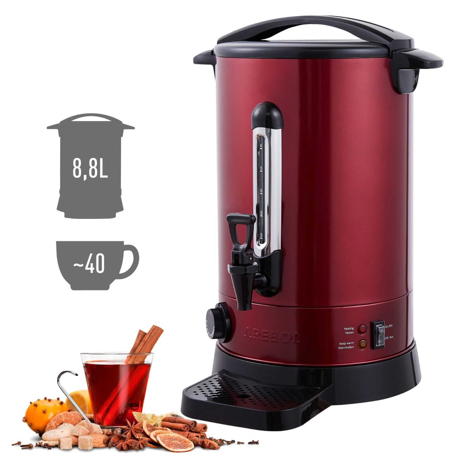 AREBOS Mulled wine kettle 8.8 L Stainless Steel Mulled wine cooker & Thermosta