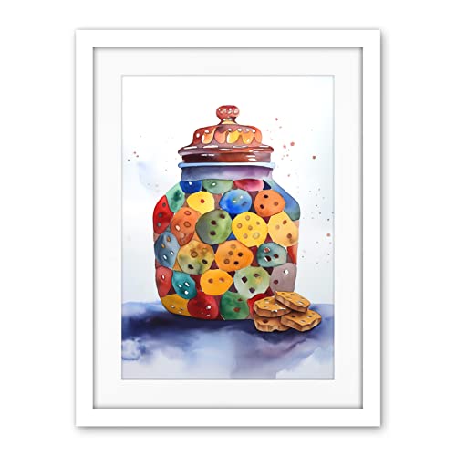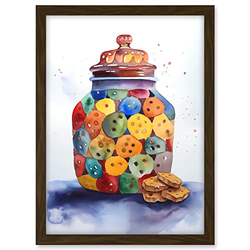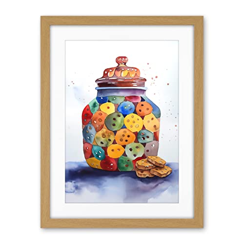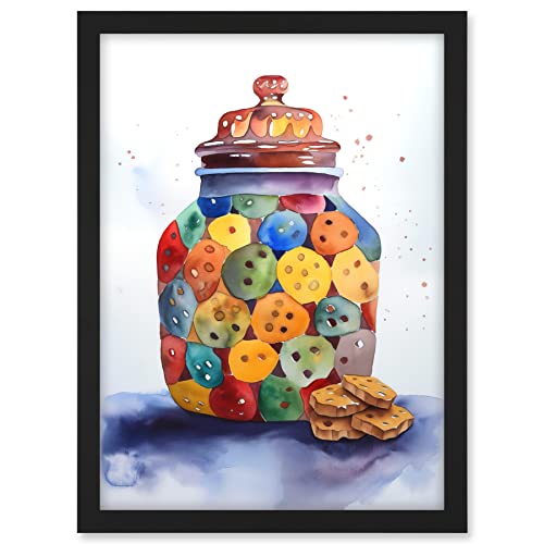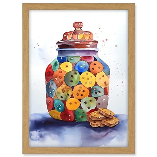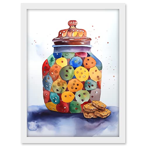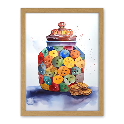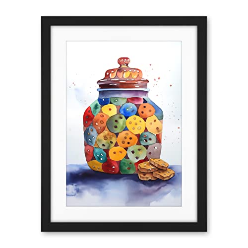 Artery8 Cookie Jar Folk Art Watercolour Painting Artwork Framed Wall Art Print 18X24 Inch