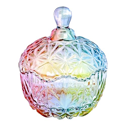 binsakao 1Pc Colorful Glass Storage Jar, Candy Jar with Lid, Cookie Jar, Jewelry Box Buffet Jar Biscuit Containers (8.7 oz / 260 ml)