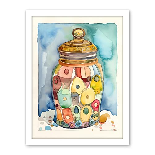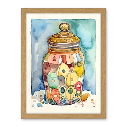 Artery8 Glass Cookie Jar With Sweets Folk Art Watercolour Painting Large Wall Art Poster Print Thick Paper 18X24 Inch