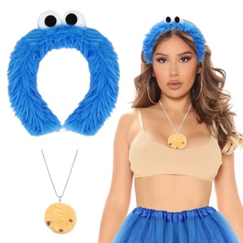 CARxlythic Cookie Monster Headband, Cookie Cookie Monster Headband with Eyes, Cookie Necklace, Cookie Earrings, Cookie Monster Accessories for Women, Carnival, Halloween Costume