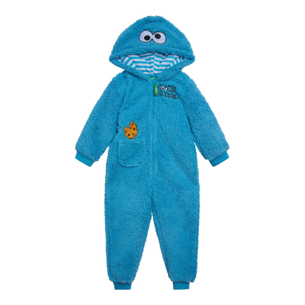 Sesame Street Cookie Monster Infant Baby Boys Cozy Sherpa Zip Up Cosplay Costume Coverall Blue 12 Months