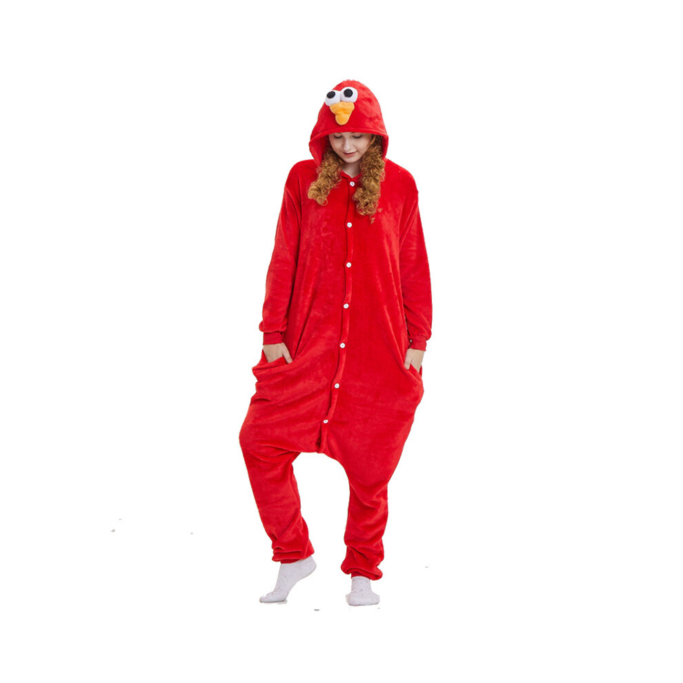 Unisex cartoon characters Green Mike Monster Sully Cookie Monster Elmo Onesie Fancy Dress Costume Hoody Pyjama Sleep wear Carnival Costume Elmo, S(height 150cm-160cm)