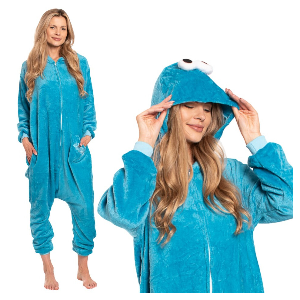 Women's Cookie Monster Onesie - Soft Hooded Kigurumi Pajamas All-in-One Loungewear Fancy Dress Costume for Adults Size S (145-155 cm)