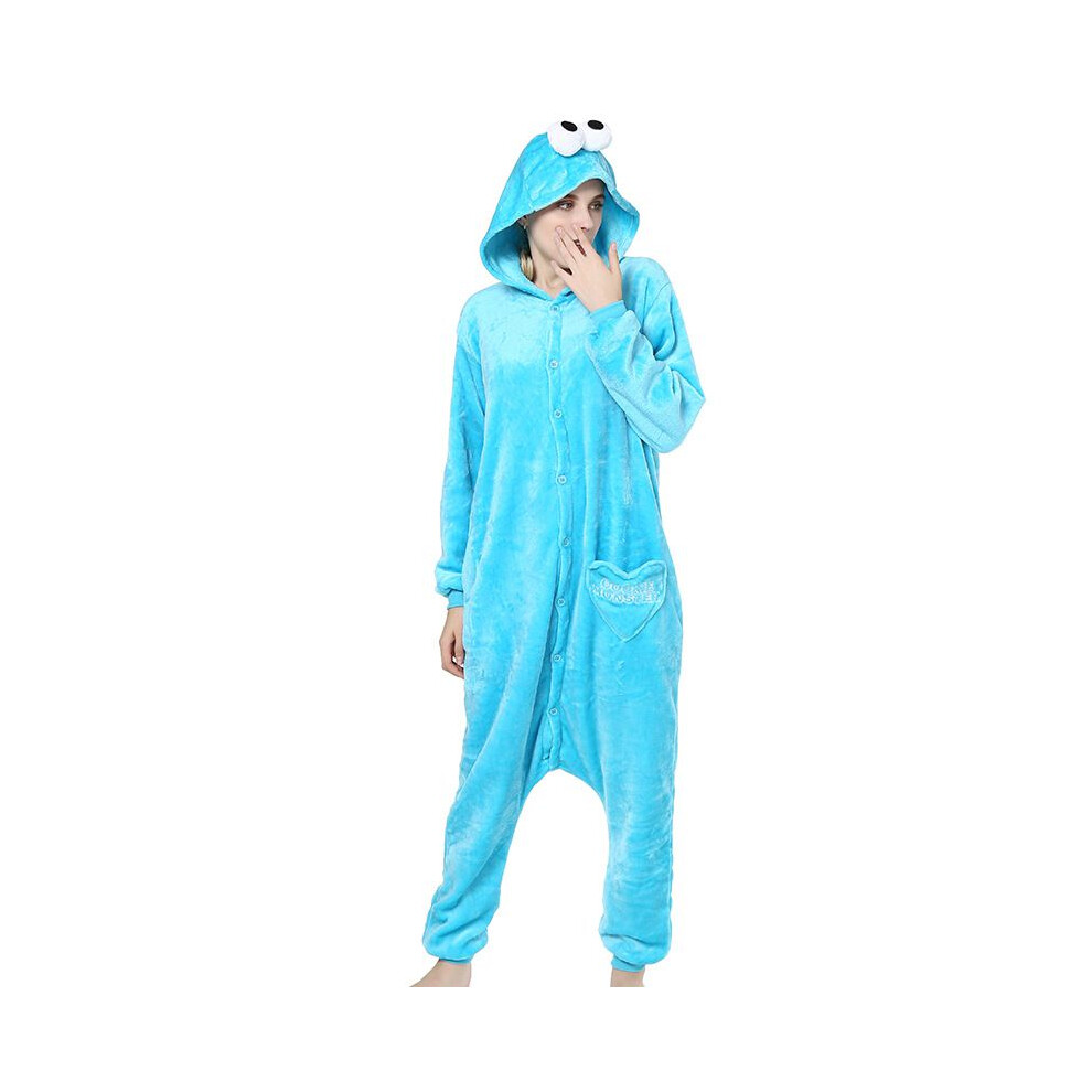 (Adult S/150, Cookie Monster) KIDS Unisex Sesame street Cookie Monster&Elmo costume pajamas Flannel Outfit