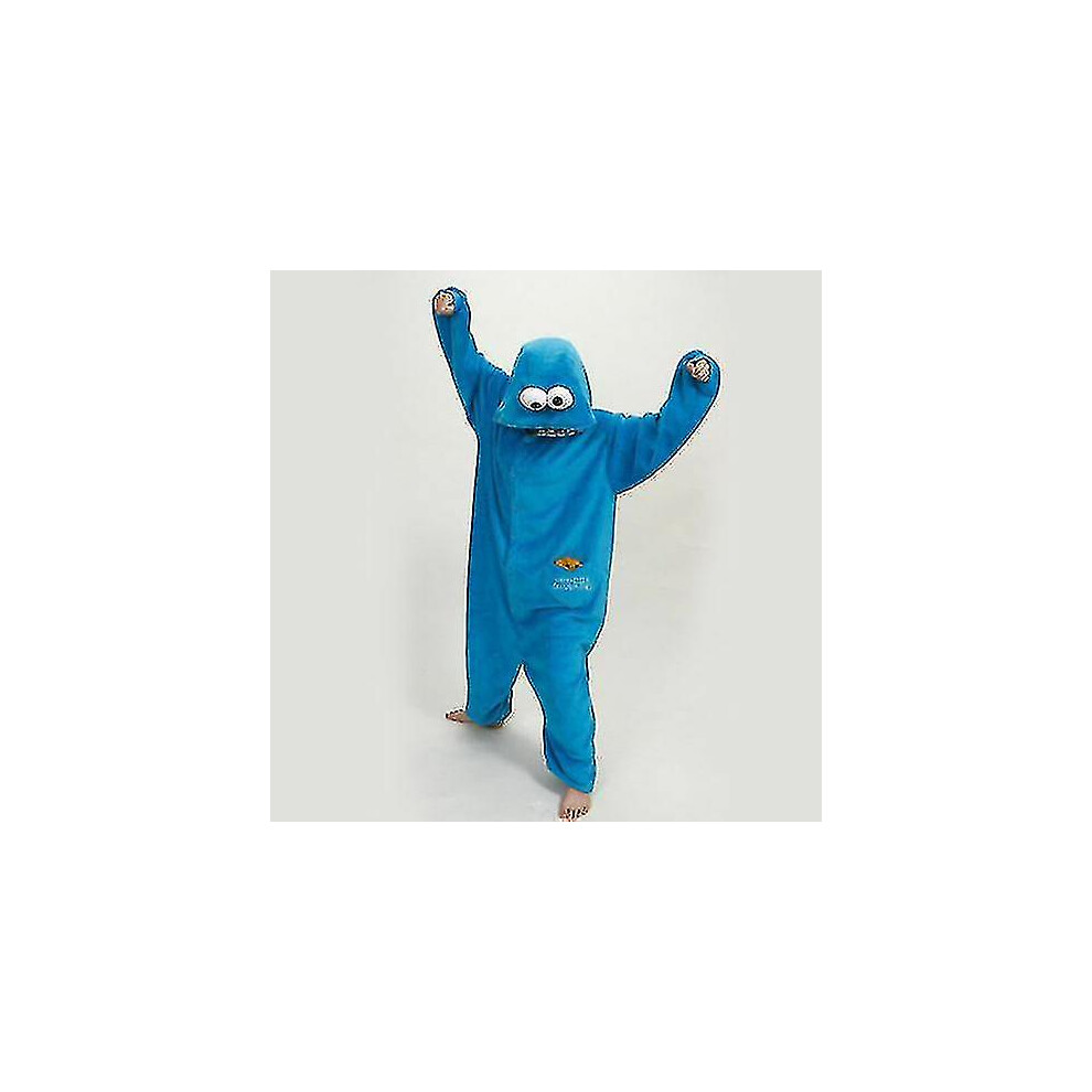 (L, blue) Adult Sesame Street Cookie Monster Blue&red Costume Pajamas Outfit.