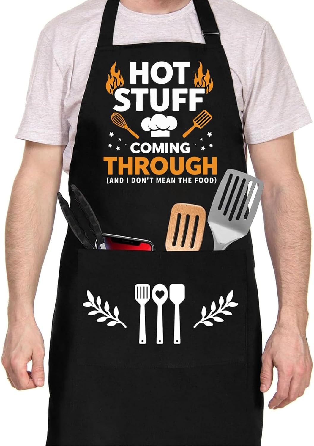 Kitchen Cooking BBQ Aprons for Men with Pockets, Adjustable Chef Apron, Funny Gi