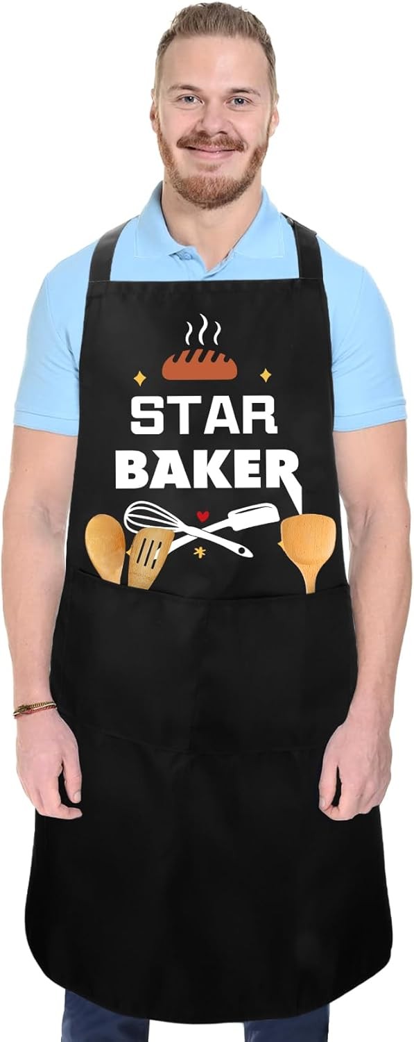 Bafeil Star Baker Apron and Wooden Spoon Set - Personalised Kitchen Cooking Aprons for Women and Men, Funny Baking Gifts for Bakers Wife Husband, Chef Cooking Accessories with Pockets, Adjustable