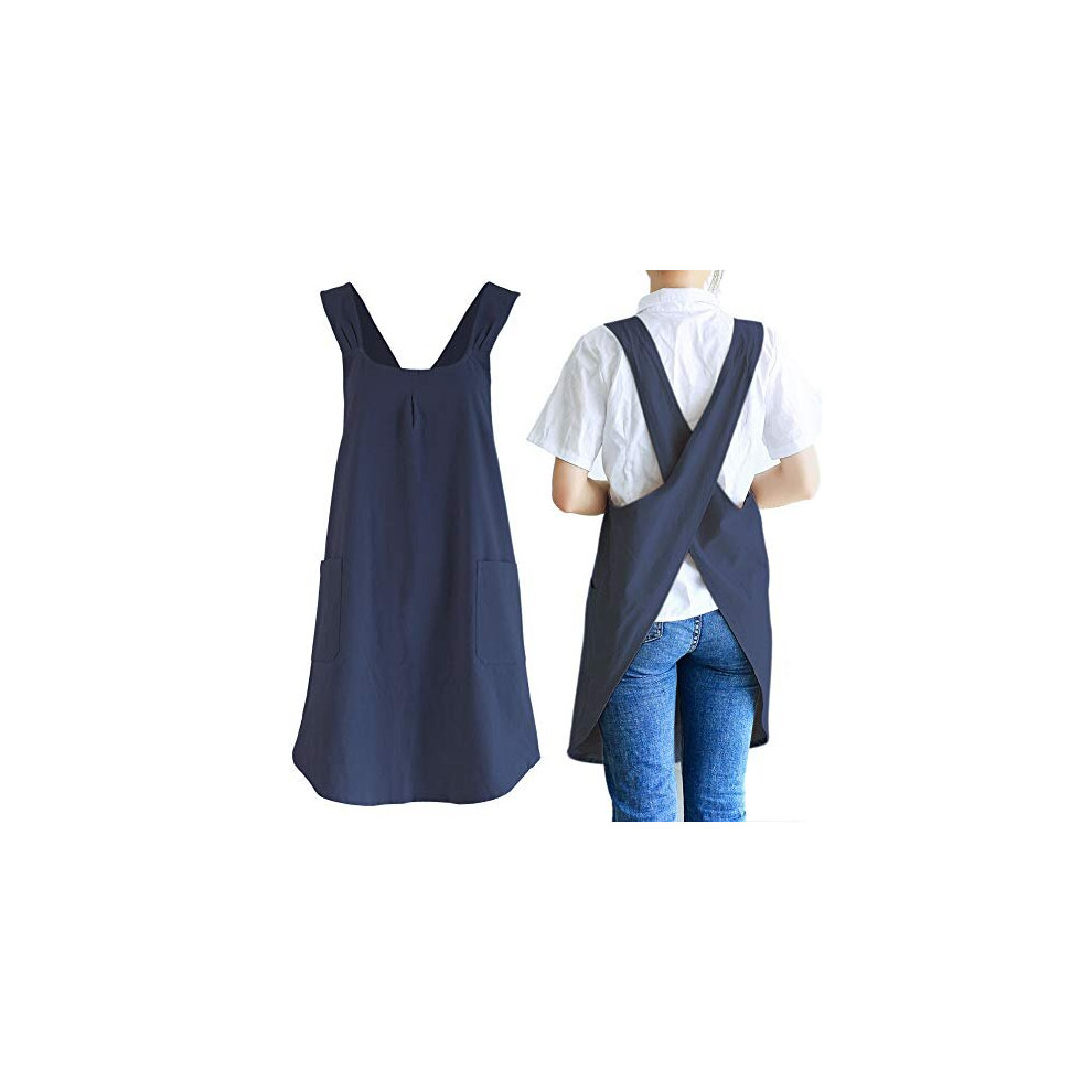 Japanese Cross Back Apron for Women, Cooking Aprons for Men with Pockets, Japanese Style Cotton Apron, for Baking Painting Gardening Cleaning