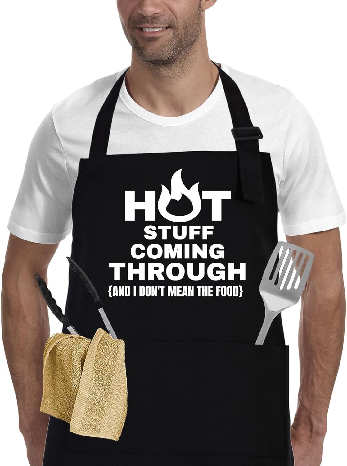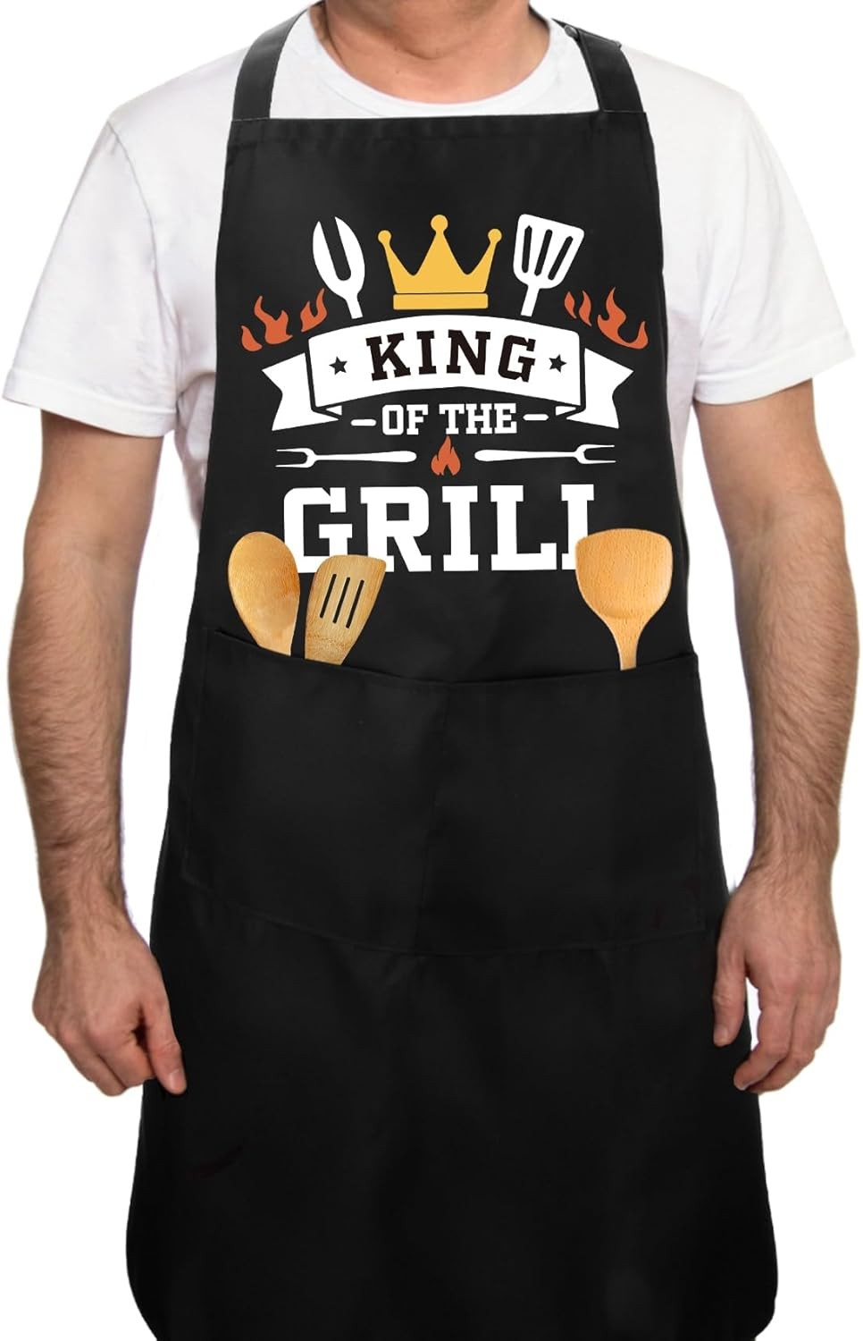 Kitchen Cooking BBQ Aprons for Men with Pockets, Adjustable Chef Apron, Funny Gifts for Men, Dad, Husband, Grandad Birthday Gifts