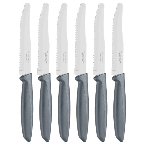 Tramontina Kitchen Knives Set of 6, Serrated Fruit Tomato Cooking Knife, Vegetable Chopper Peeler, Stainless Steel, Multipurpose, Rounded Tip, Grey, 23498655