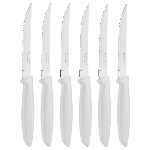 Tramontina Kitchen Knives Set of 6, Serrated Fruit Tomato Cooking Knife, Vegetable Chopper Peeler, Stainless Steel, Multipurpose, Rounded Tip, White, 23498355