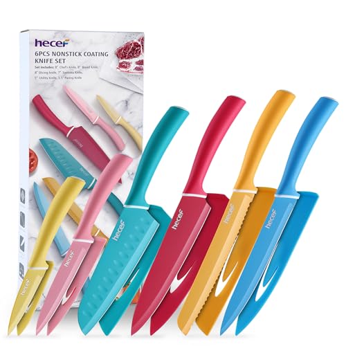 hecef Slice & Dice in Style 6 Pieces Kitchen Knife Set Premium Stainless Steel Non-Stick Multicolor Cooking Knives, Ergonomic Handle & Dishwasher Safe
