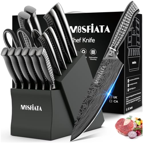 MOSFiATA 17-Piece Knife Set, Super Sharp Professional Chef Kitchen Knife Set with Block, High Carbon Stainless Steel Cooking Kitchen Knives Set with Knife Rod Sharpener Gift Box Grey