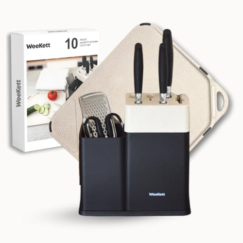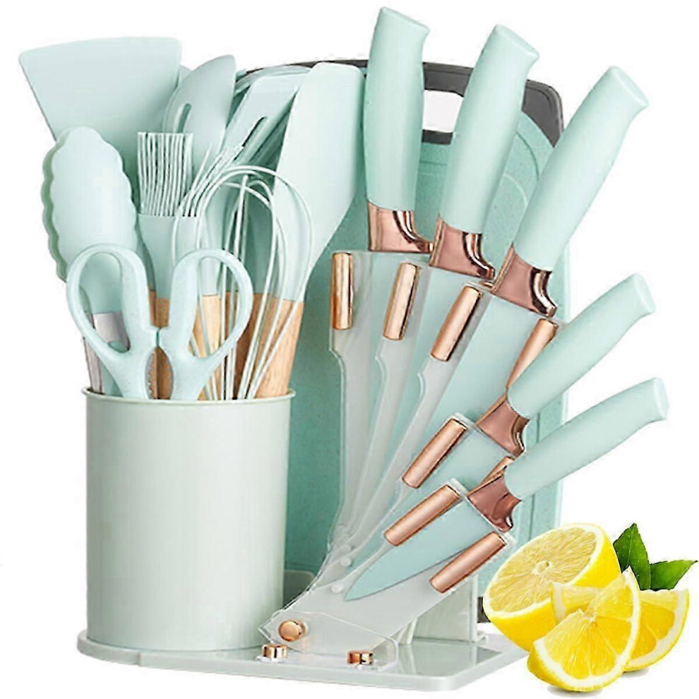 (As show, One size) 19 Pieces Kitchen Cooking Utensils and Knife Set Holder with Block, Include 11 Pcs Silicone Utensilsi