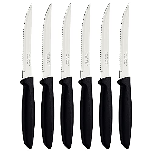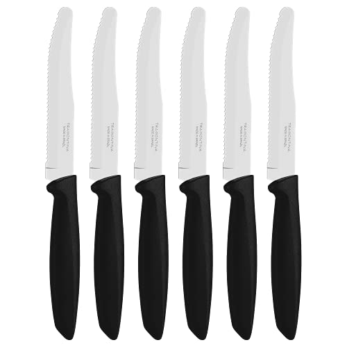 Tramontina Kitchen Knives Set of 6, Serrated Fruit Tomato Cooking Knife, Vegetable Chopper Peeler, Stainless Steel, Multipurpose, Rounded Tip, Black, 23498055