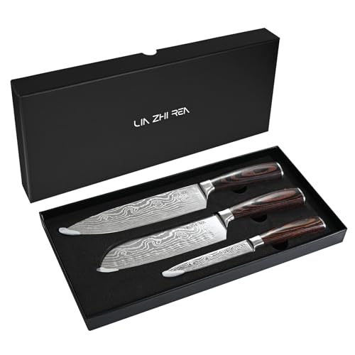 LIN ZHI REN Kitchen Knife Set, High Carbon Stainless Steel Kitchen Knives, 3 Piece Chef Knives Sets with Ergonomic Handle, Cooking Knives Come with Gift Box