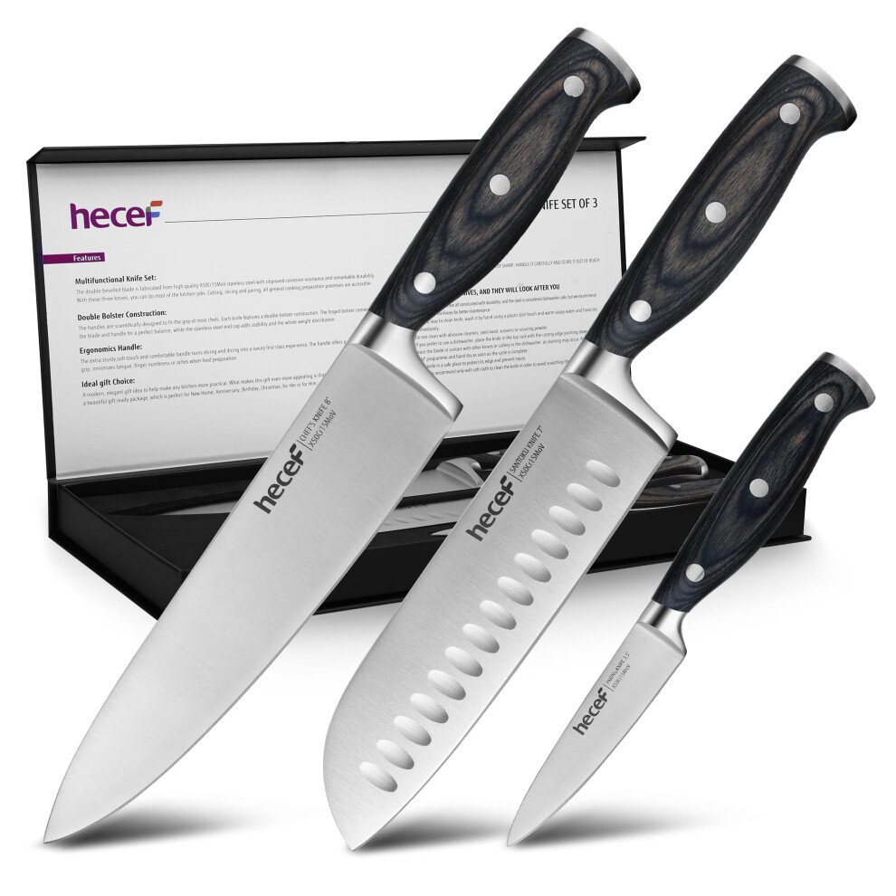 hecef Kitchen Knife Set, 3PCS Professional Chef Knife Set High Carbon Stainless Steel, Cooking Knife Set with Ergonomic Pakkawood Handle for Chef