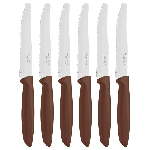 Tramontina Kitchen Knives Set of 6, Serrated Fruit Tomato Cooking Knife, Vegetable Chopper Peeler, Stainless Steel, Multipurpose, Rounded Tip, Brown, 23498455