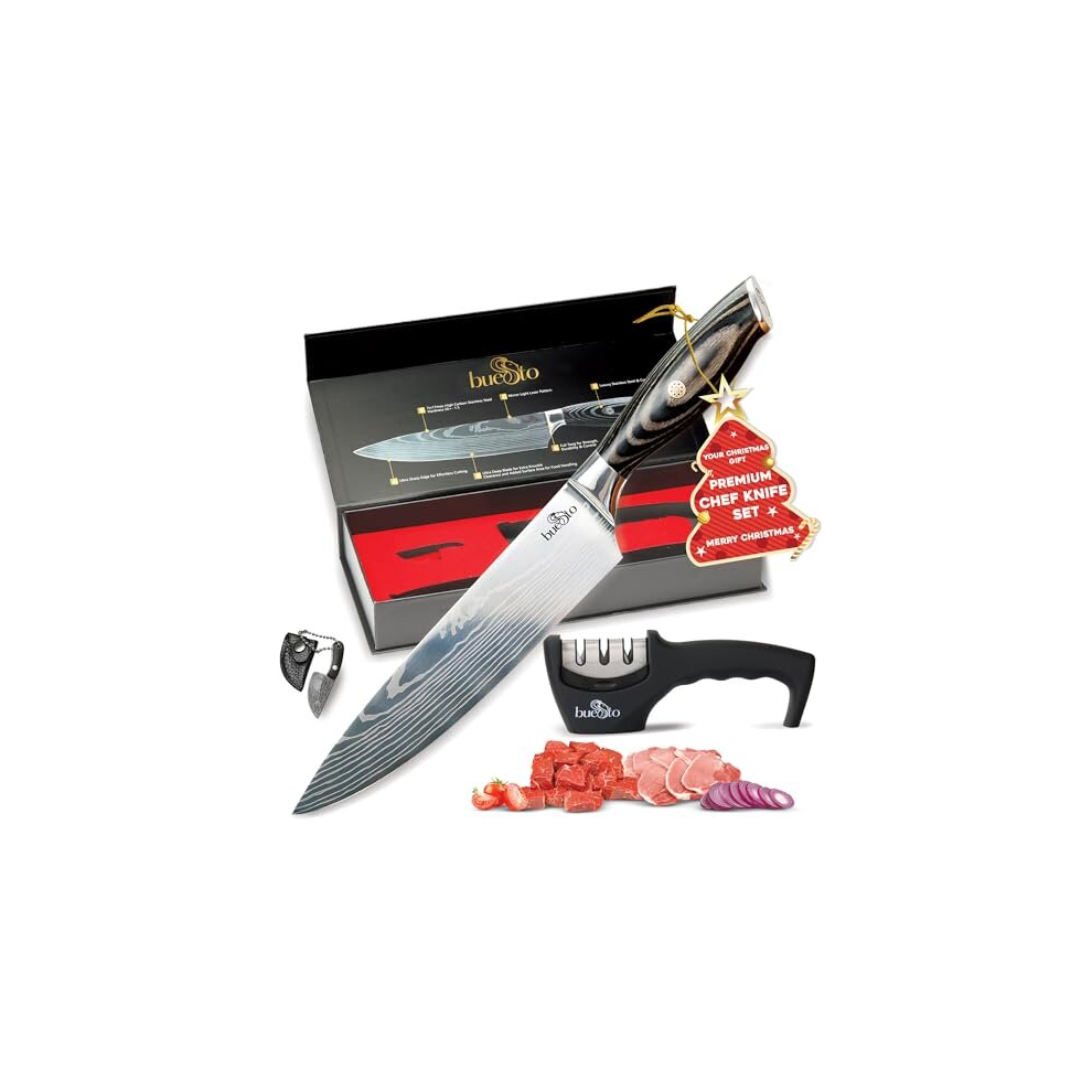 Chef Knife - Chopping Knife - 8 inch Kitchen Knife - 7cr17mov High Carbon Stainless Steel Chefs Knife - Cooking Knife - Chef Knife Set with 3-Stage