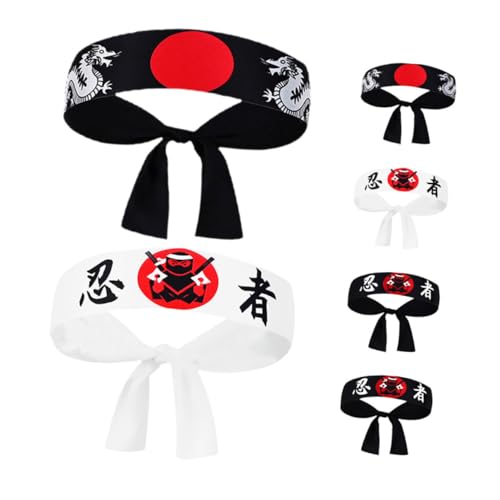 ERINGOGO 6pcs Japanese Samurai Headbands Soft Polyester Fiber Ninja Bandanas for Adults Birthday Parties Cosplay Karate Cooking Kitchen Costume Accessories