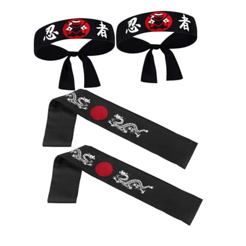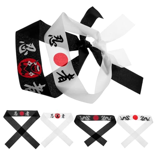 FOMIYES 4pcs Japanese Ninja Headbands Quick Dry Elastic Hair Bands for Adults Skin Friendly Polyester for Karate Cooking Cosplay Party Decorations
