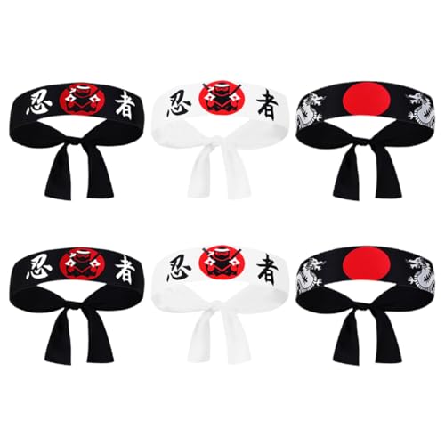 HONMEET 6Pcs Ninja Headbands Set Japanese Samurai Karate Wide Headband for Men and Women Asian Costume Cooking Chef Bandanas Fitness and Cosplay Accessories