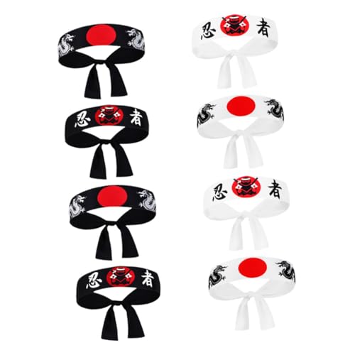 OUNONA 8pcs Japanese Samurai Headband Sports Hairband Bandana for Karate Ninja Cooking and Sushi Costume Accessories