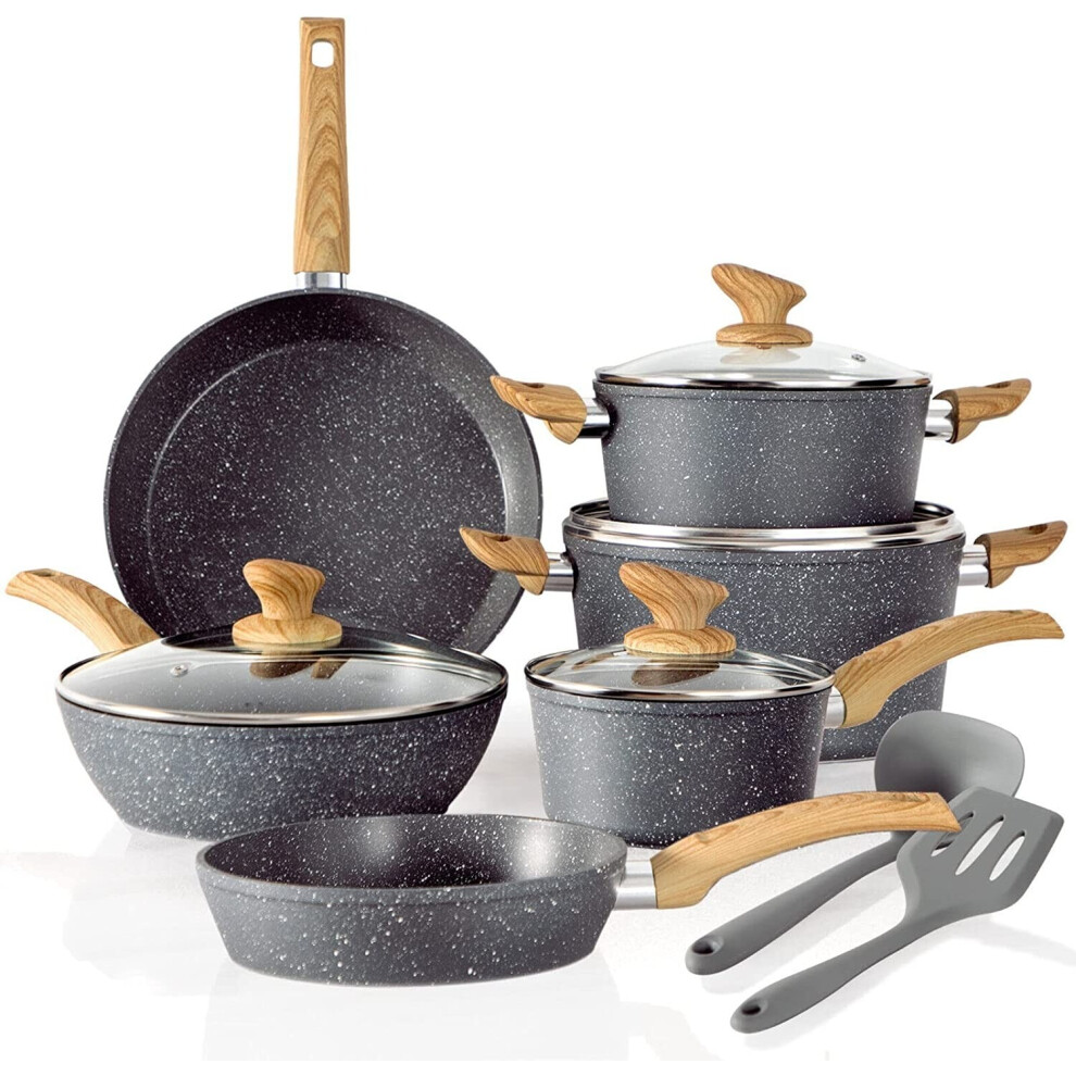 Induction Kitchen Cookware Sets Nonstick - Granite Hammered Pan Set 12 Piece, Dishwasher Safe Cooking Pots and Pans Set