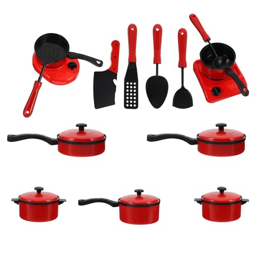 SUPVOX 13pcs Red Kitchen Playset, Realistic Cooking Utensil with Pots and Pans, Educational Interactive Kitchen Themed Playthings for Boys
