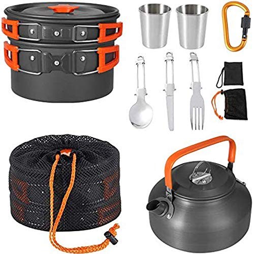 HOMGEN Camping Cooking Set Camping Pots and Pans Set Aluminium Camping Kettle Camping Cookware Kit Protable Cooking Mess Kit Lightweight Camping Cooking Equipment for 2-3 People