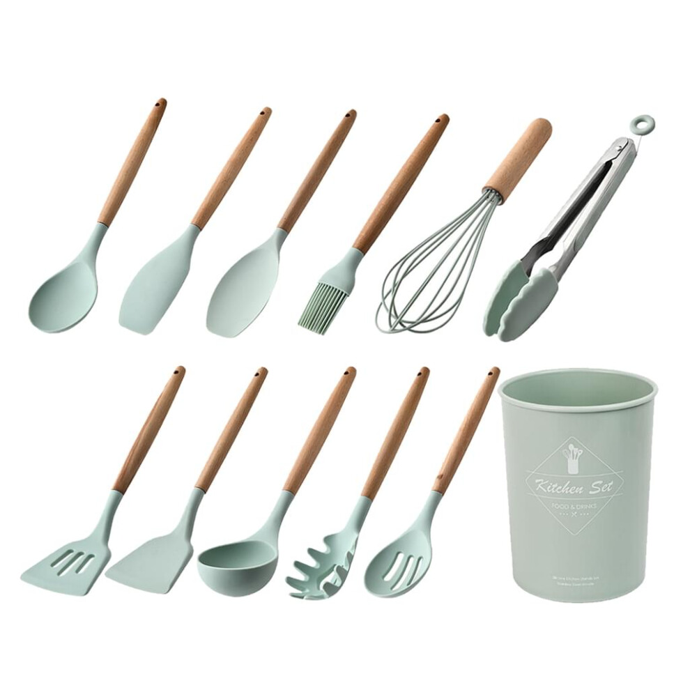 Silicone Kitchen Tools Set with Wooden Handles, Non Scratch Silicone Cooking Utensils for Pots and Pans, Heat Resistant Up to 230 Degrees, BPA Free Fo