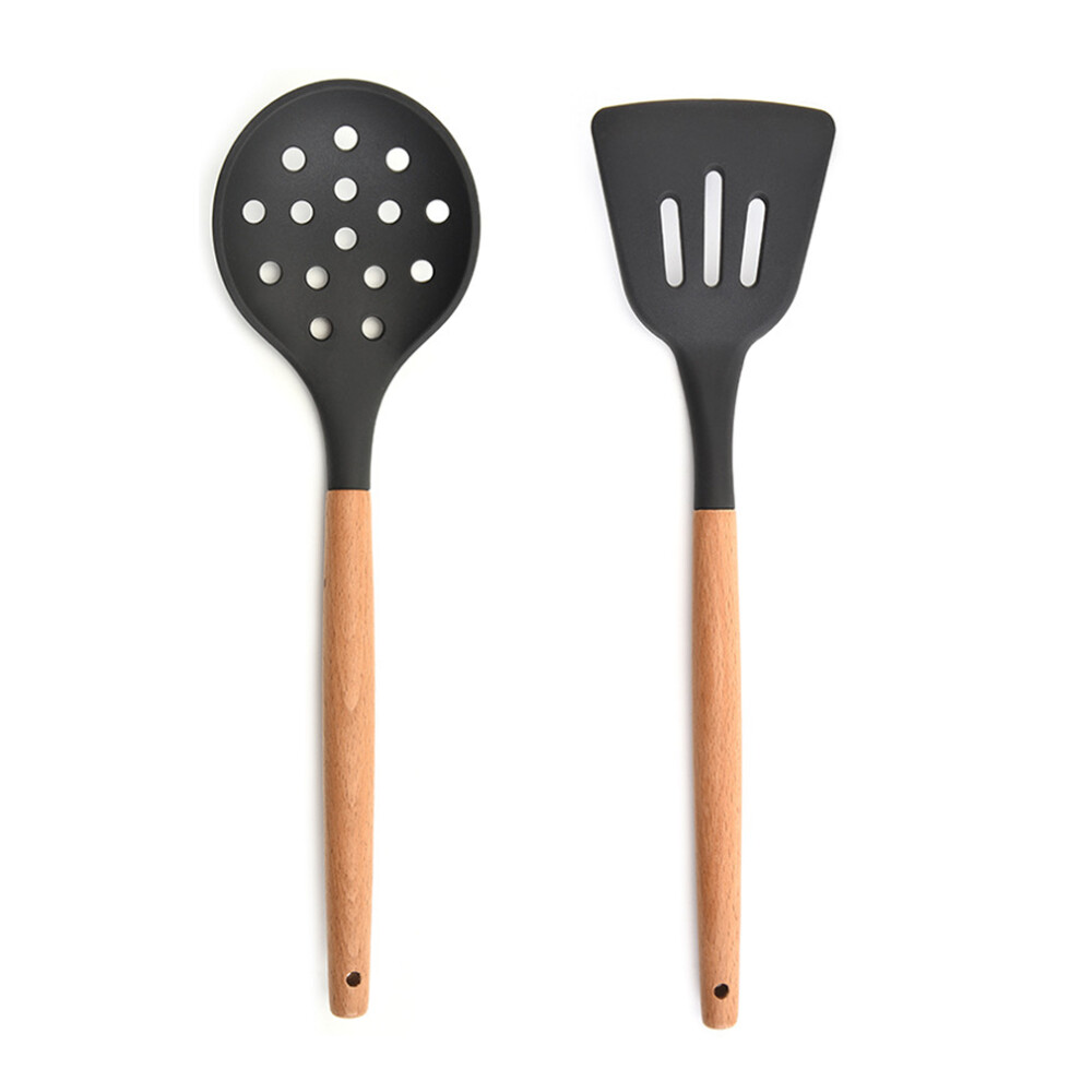 Rounded Wood Handles Kitchen Utensil Collection, BPA Free Non Scratch Silicone Cooking Set for Pots and Pans, Heat Resistant up to 230C, Flexible Yet
