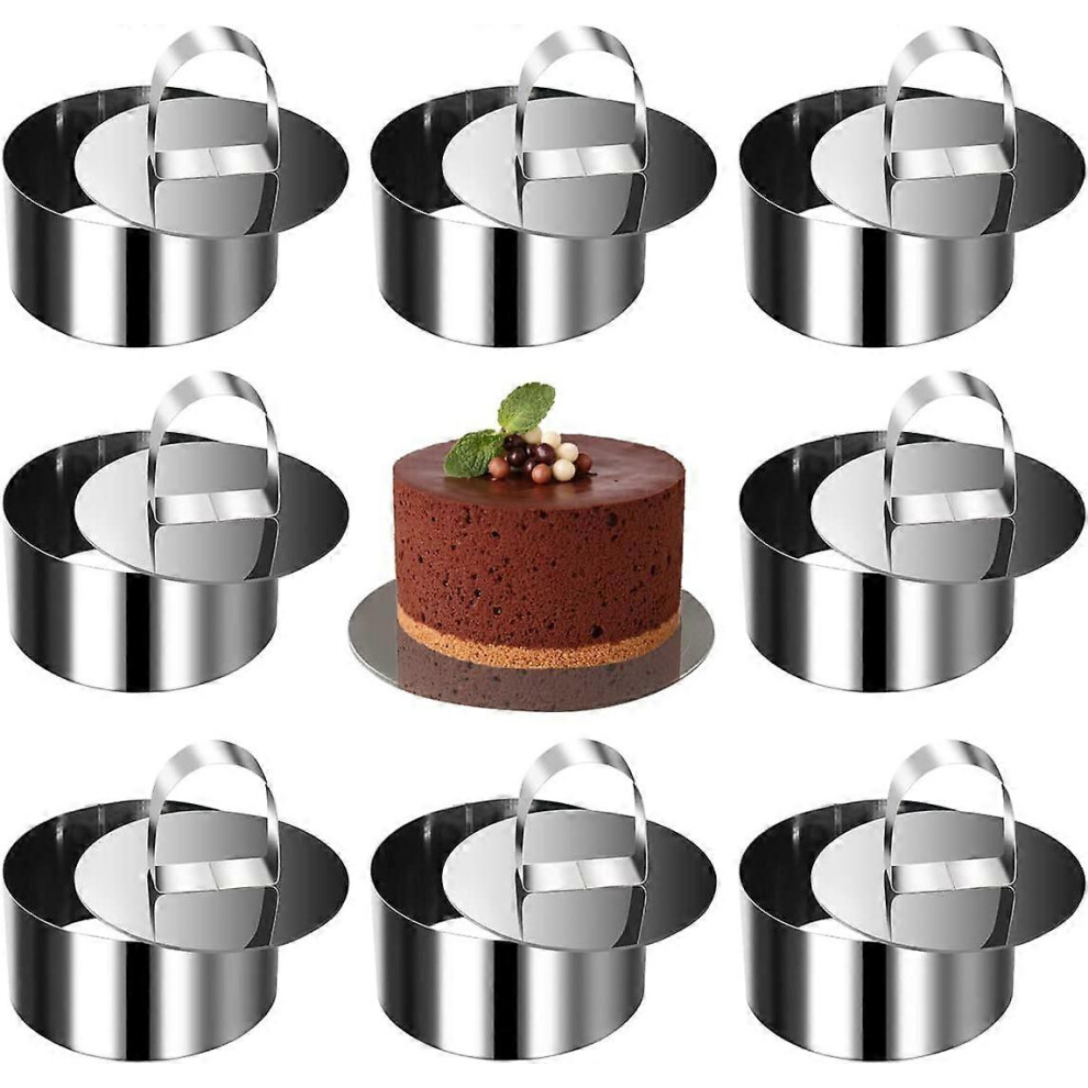 8 Pieces Round Food Rings,cooking Rings Set,stainless Steel Cake Circle Set,round Food Baking Ring,with Pusher,for Family Cooking Eggs Pastry Mousse D