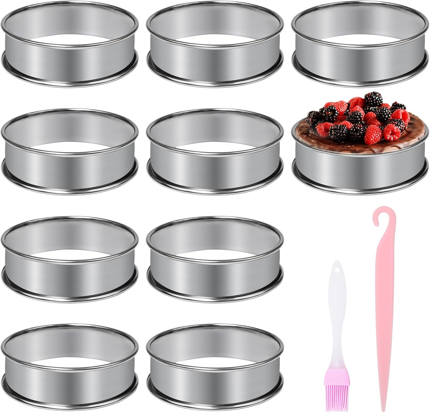 Crumpet Rings Non Stick Tart Rings 304 Stainless Steel Cooking Rings Cake Ring with Pastry Brush for Baking Cookie Pancake Egg Muffin Kitchen Home