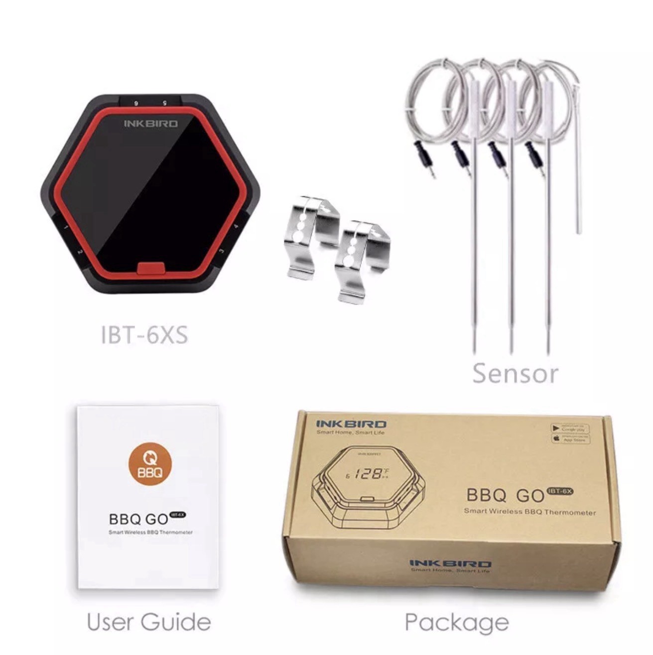 Inkbird BBQ Cooking Thermometer IBT-6XS Red 4 Probes Meat Pork Oven Grill C/F UK