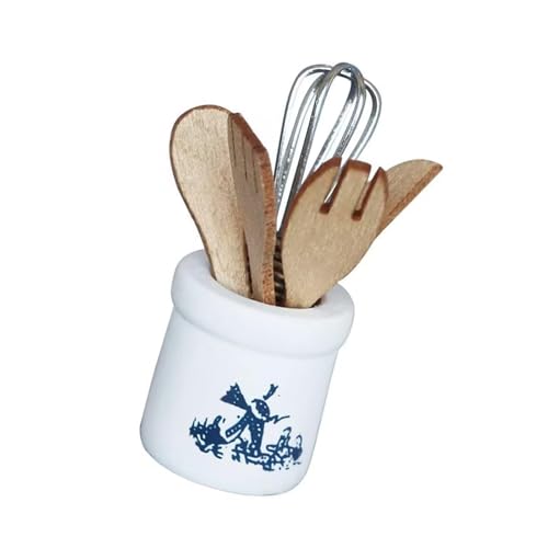 CAZSTYK Miniature Kitchen Cooking Tool Set for Doll House Scene Setting Utensils with Storage Vertical Rack and Spatula Doll House Tool