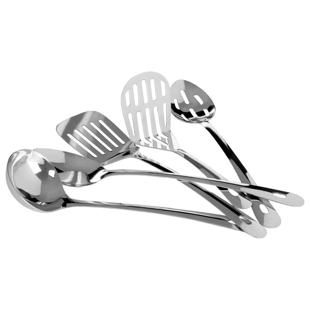 5pc Stainless Steel kitchen Utensils Set,Cooking Tool Set With Spoon, Ladle, Masher, Slotted Spoon & Turner