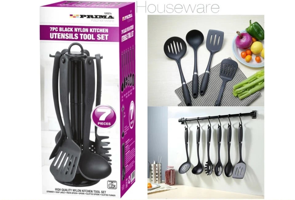 7x BLACK Nylon Kitchen Cooking Tool Set Utensils Cutlery NON STICK Home Food UK