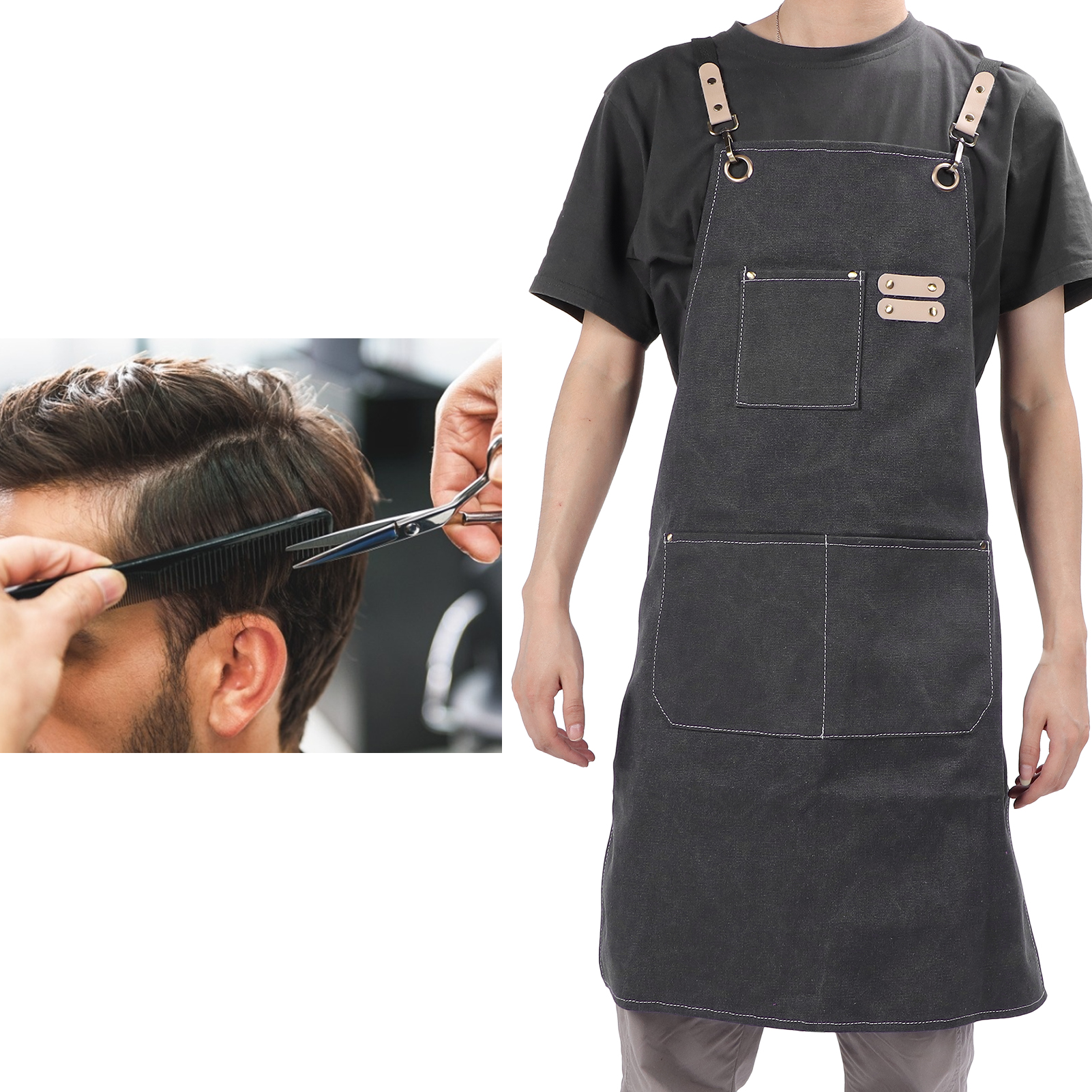 Cotton Canvas Apron Adjustable Cross Back Apron Kitchen Cooking Apron With