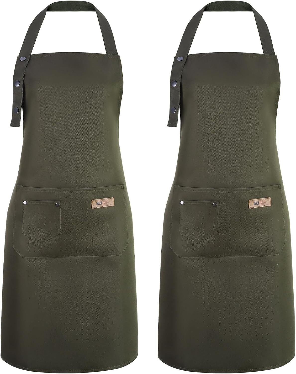 WENYA 2 Pack Kitchen Apron for Women, Unisex Adjustable Cooking Apron with Pockets, Canvas Waterproof Apron for Home Kitchen, Restaurant, Coffee House (Dark Green)