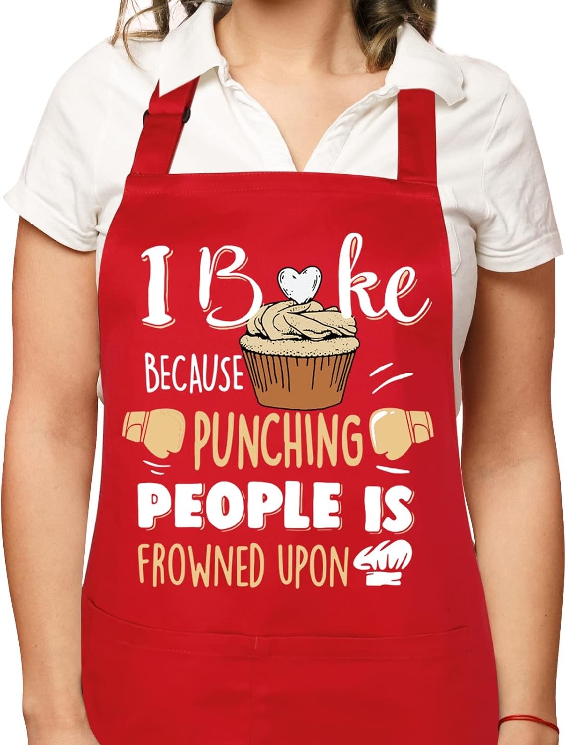 Funny Apron for Women Cooking Apron with Pockets Adjustable Kitchen Baking Cott